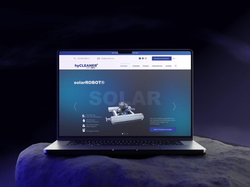 Im Rahmen meiner Tätigkeit bei Pocket Rocket habe ich den Webauftritt von HyCleaner, einem Hersteller von Robotern für Solar-, Fassaden- und Glasreinigung, neu gestaltet. Das Redesign entstand in enger Zusammenarbeit mit dem Kunden, um Struktur, Inhalte und Bildsprache optimal an die Zielgruppe anzupassen. Dabei arbeitete ich intensiv mit Figma